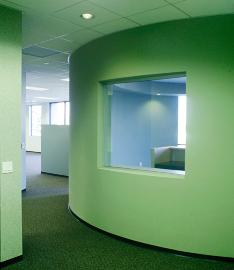 The design creates an upscale corporate office interior that reflects the company’s national position as a manufacturer of school equipment. The design approach utilizes the three basic geometrics as the “ABC’s” of the interior spatial arrangement, and utilizes secondary colors to emphasize these contrasting geometries.